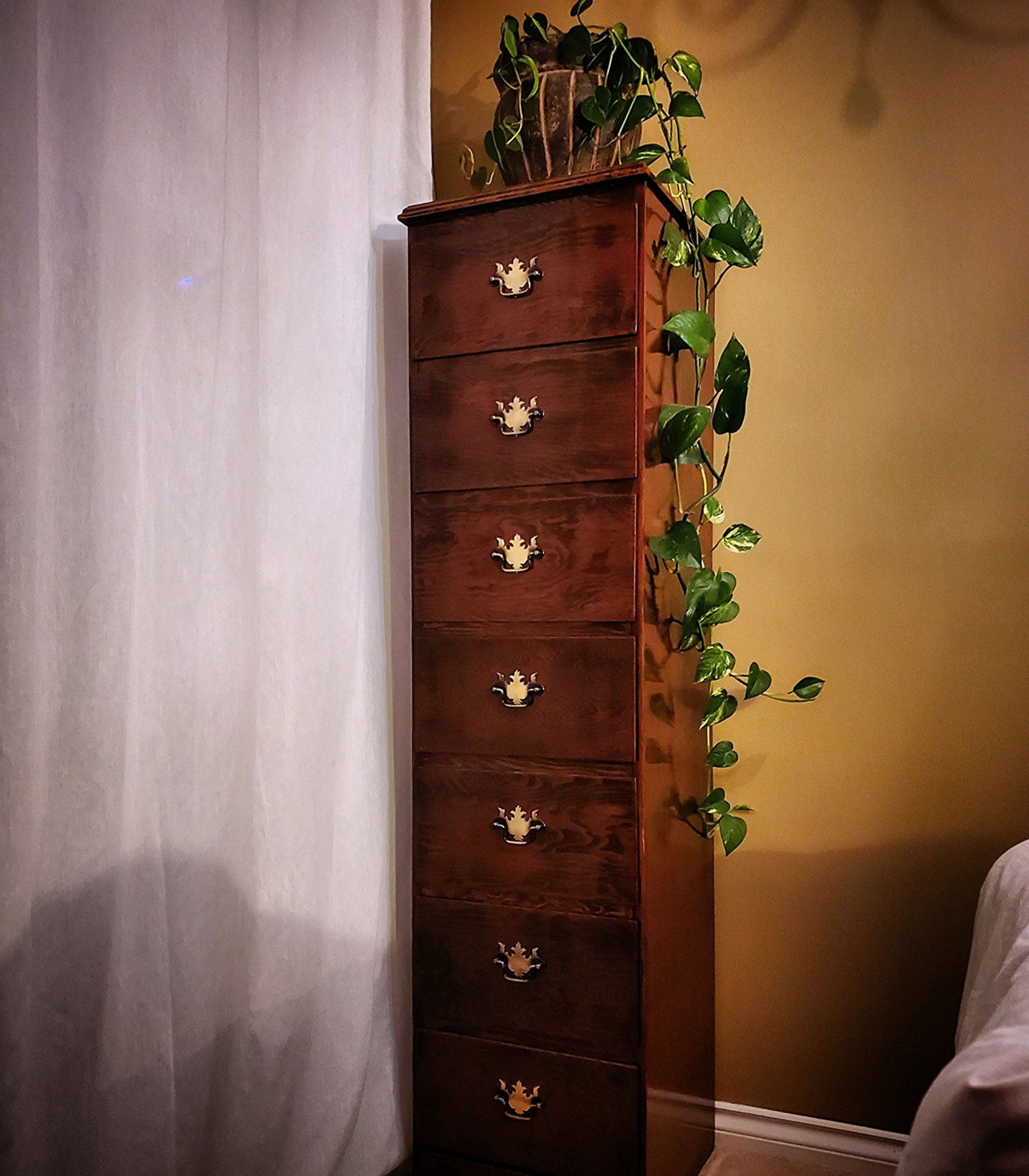 The super-cool semanier chest! Lots of storage and its tiny footprint can be placed almost anywhere. Semanier is an old French term for “seven” indicating seven drawers with seven underwear changes.